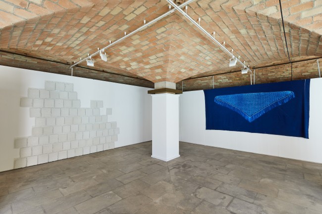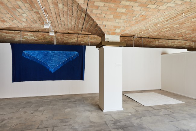 Cache tes épaules ! 2021. Cyanotype sur drap coton, 3 m x 1.70 m